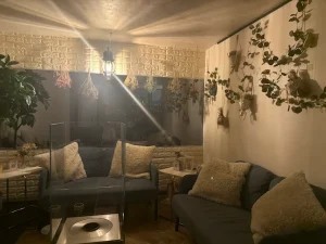 店員さんは優しくてフレンドリーな方で、実演もまじえた吸い方のレクチャーにより初心者の自分もすぐにシーシャを美味しく味わうことが出来ました。 お店の天所がすごくキラキラしてて不思議な雰囲気で、楽しい空間でした.