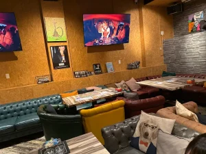 16時来店、他のお客さんはいませんでした。落ち着いた雰囲気で、ドリンク・シーシャのフレーバーが豊富。飲み放題にするとカラオケ歌い放題